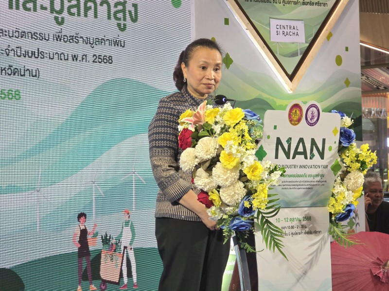 (10 ตุลาคม 2568) จังหวัดน่าน โดยสำนักงานอุตสาหกรรมจังหวัดน่าน จัดงาน “NAN AGRO INDUSTRY INNOVATION FAIR 2025” ระหว่างวันที่ 10–12 ตุลาคม 2568 ณ ลานโปรโมชั่น ชั้น G ศูนย์การค้าเซ็นทรัล ศรีราชา จังหวัดชลบุรี ภายใต้โครงการ “เกษตรปลอดภัยและมูลค่าสูง” เพื่อส่งเสริมเกษตรกร วิสาหกิจชุมชน และผู้ประกอบการด้านการเกษตรให้มีพื้นที่นำเสนอผลิตภัณฑ์คุณภาพ เชื่อมโยงกับผู้บริโภคโดยตรง และต่อยอดสู่ตลาดทั้งในและต่างประเทศ ภายในงานได้รับเกียรติจาก (เว้นตำแหน่งประธานในพิธีเปิดงาน) มาเป็นประธานเปิดงานอย่างเป็นทางการ พร้อมด้วยผู้แทนจากหน่วยงานภาครัฐและเอกชนที่เกี่ยวข้อง
