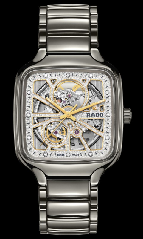ส่วนรุ่นพลาสม่าขัดเงาโดดเด่นด้วยเข็มสีเหลืองทองเคลือบสารเรืองแสง Super-LumiNova® ที่จับแสงได้งดงามในทุกองศาทั้งสองรุ่นผ่านการสร้างสรรค์ด้วยเทคโนโลยี Electroforming อันเป็นกรรมวิธีเฉพาะของ Rado ที่ทำให้เกิดเอฟเฟกต์ผงเพชรละเอียดบนหน้าปัดได้อย่างสม่ำเสมอ พร้อมการปั๊มนูนโลโก้ Rado และขีดบอกนาทีอย่างประณีตด้วยกระบวนการ Galvanic ซึ่งสะท้อนความเชี่ยวชาญด้านวัสดุและงานฝีมือระดับสูงที่เป็นเอกลักษณ์ของแบรนด์