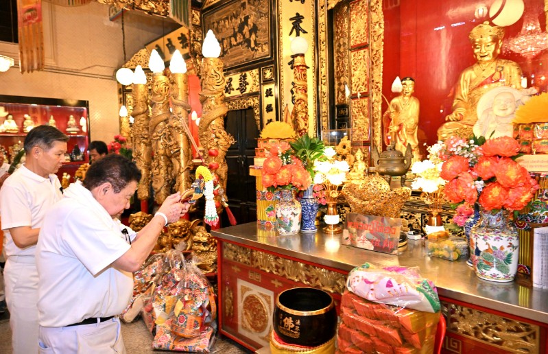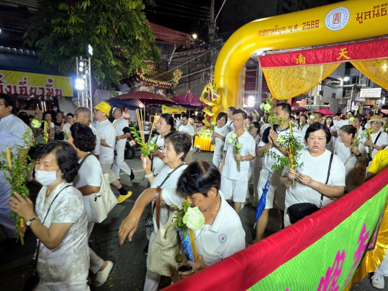 มูลนิธิป่อเต็กตึ๊ง รวมพลังผู้มีจิตศรัทธานับพัน จัดพิธีเวียนธูปศักดิ์สิทธิ์ เนื่องในเทศกาลกินเจ ประจำปี 2568 ตั้งจิตอธิษฐานถวายเป็นพระราชกุศล แด่ สมเด็จพระนางเจ้าสิริกิติ์ พระบรมราชินีนาถ พระบรมราชชนนีพันปีหลวง พระผู้เสด็จสู่สวรรคาลัย รวมทั้งขอพรให้ทั่วทุกผืนแผ่นดินไทยผ่านพ้นโพยภัยพิบัติ ทุกแนวชายแดนไทยปลอดภัยจากการรุกราน ณ ศาลเจ้าไต้ฮงกง มูลนิธิป่อเต็กตึ๊ง พลับพลาไชย