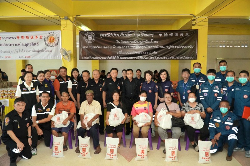 ระหว่างวันที่ 25 – 30 ตุลาคม พ.ศ. 2568 มูลนิธิป่อเต็กตึ๊ง นำโดย นางศิริกุล โอภาสวงศ์ กรรมการและเลขาธิการ พร้อมด้วย นายรัชพร ประสงค์ทรัพย์ หัวหน้าแผนกสาธารณภัย ฝ่ายสังคมสงเคราะห์ และ และนายชุมพล บุญภักดี ผู้ช่วยหัวหน้าแผนกสาธารณภัย จัดทีมเจ้าหน้าที่แผนกสาธารณภัย ฝ่ายสังคมสงเคราะห์ และทีมบรรเทาสาธารณภัย ฝ่ายปฏิบัติการ ลงพื้นที่ซับน้ำตาผู้ประสบอุทกภัยในโครงการฟื้นฟูหลังน้ำลด ในพื้นที่จังหวัดอยุธยา พิจิตร สุโขทัย อุตรดิตถ์ เพื่อถวายเป็นพระราชกุศลแด่สมเด็จพระนางเจ้าสิริกิติ์ พระบรมราชินีนาถ พระบรมราชชนนีพันปีหลวง โดยแจกจ่ายเครื่องอุปโภคบริโภค ประกอบด้วย ข้าวสาร ปลากระป๋อง บะหมี่กึ่งสำเร็จรูป น้ำมัน และน้ำปลา รวมจำนวน 5,500 ชุด ๆ ละ 450 บาท โดยในพื้นที่จังหวัดอุตรดิตถ์ มูลนิธิฯ ได้มอบเงินสงเคราะห์กรณีบ้านเรือนที่เสียหายจากอุทกภัย หลังละ12,000 บาท จำนวน 65 หลัง นอกจากนี้ในพื้นที่จังหวัดอยุธยาและอุตรดิตถ์ มูลนิธิฯ ได้มอบเงินสงเคราะห์ค่าฌาปนกิจให้แก่ญาติผู้เสียชีวิตรวมจำนวน 11 รายๆ ละ 20,000 บาท รวมงบประมาณการฟื้นฟูหลังน้ำลดในรอบนี้ทั้งสิ้น 3,475,000 บาท (สามล้านสี่แสนเจ็ดหมื่นห้าพันบาทถ้วน) โดยมี ผู้แทนจากหน่วยงานรัฐเป็นประธานในพิธี พร้อมด้วย นางศิริพร โอภาสวงศ์ อาสาสมัครกิตติมศักดิ์มูลนิธิป่อเต็กตึ๊ง ร่วมลงพื้นที่แจกจ่ายและให้กำลังใจแก่ผู้ประสบภัย และสมาคม/มูลนิธิแต่ละจังหวัด เป็นผู้ประสานงานและร่วมให้ความช่วยเหลือ