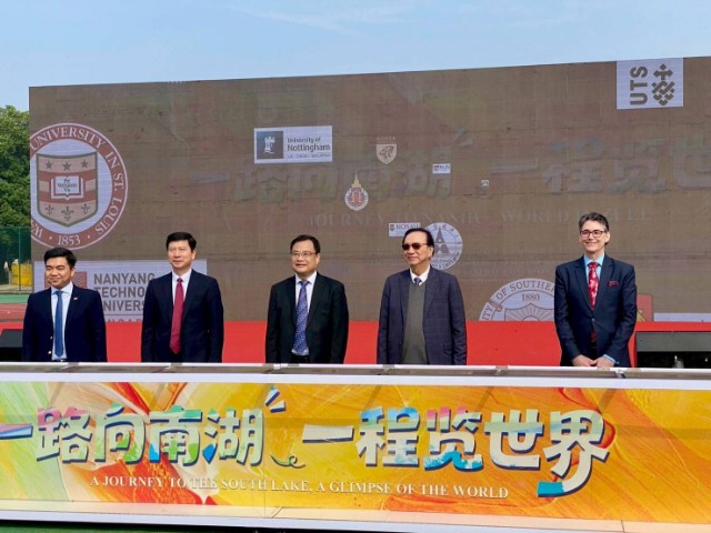 โดย ศาสตราจารย์ ดร.สมบัติ ธำรงธัญวงศ์ อธิการบดีมหาวิทยาลัยวลัยลักษณ์ พร้อมด้วย รองศาสตราจารย์ ดร.จรัญ บุญกาญจน์ รองอธิการบดีในฐานะรักษาการแทนคณบดีสำนักวิชาศิลปศาสตร์ และผู้ช่วยศาสตราจารย์ ดร.ภัทร์นรินทร์ ศุภกร ผู้อำนวยการศูนย์กิจการนานาชาติ และคณาจารย์หลักสูตรภาษาจีน ได้เดินทางเข้าร่วมงาน Nanhu International Education Week 2025 ซึ่งจัดขึ้นโดย ZUEL ระหว่างวันที่ 1-3 พฤศจิกายน 2568 ที่ผ่านมา