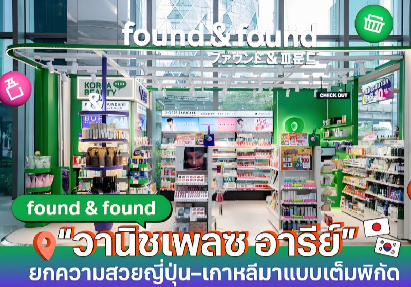“found & found” บิวตี้เดสติเนชันสุดฮอตจากญี่ปุ่น–เกาหลี เปิดบ้านใหม่ใจกลางย่านสุดฮิป กับสาขา“วานิชเพลซ อารีย์” ที่พร้อมให้เหล่าสายสกินแคร์และเมคอัพได้มาปลดล็อกพลังความสวยกันแบบจุก ๆ มีมุมให้ลูกค้าได้หยิบลองเทสต์จริงก่อนตัดสินใจ พร้อมโซนแนะนำผลิตภัณฑ์สุดฮอตที่ทางร้านคัดสรรมาอย่างดี ถูกใจทั้งสาวออฟฟิศที่อยากรีเฟรชลุคก่อนเข้าประชุม ไปจนถึงหนุ่มสาวย่านอารีย์ที่ชอบความเรียบง่ายแต่มีสไตล์
