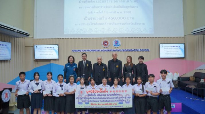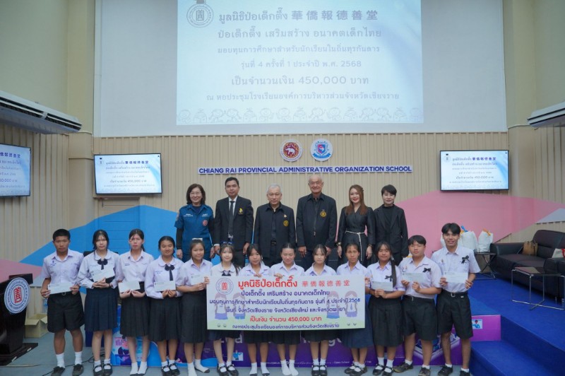 (วันจันทร์ที่ 24 พฤศจิกายน พ.ศ. 2568) มูลนิธิป่อเต็กตึ๊ง นำโดย นายสุรพงษ์ เตชะหรูวิจิตร กรรมการและรองเลขาธิการ พร้อมด้วย นายนิพนธ์ ลีละศิธร กรรมการ และนางสาวดวงชุตา ติยะพจนพรกุล ผู้ช่วยผู้จัดการฝ่ายสังคมสงเคราะห์ นำทีมแผนกส่งเสริมการศึกษาและอาชีพลงพื้นที่จังหวัดเชียงราย มอบทุนการศึกษาในระดับมัธยมศึกษาแก่นักเรียนในถิ่นทุรกันดาร รุ่นที่ 4 ครั้งที่ 1 ประจำปี 2568 ซึ่งเป็นการมอบทุนฯ ในรูปแบบต่อเนื่อง 3 ปี รวมจำนวน 60 ทุน รวมงบประมาณทั้งสิ้น 450,000 บาท (สี่แสนห้าหมื่นบาทถ้วน) โดยมี นายวีระยุทธ คีลาวงค์ รองผู้อำนวยการโรงเรียนองค์การบริหารส่วนจังหวัดเชียงราย พร้อมด้วยผู้บริหารสถานศึกษา อีก 20 แห่ง คณะครู อาจารย์ และผู้แทนนักเรียนจากโรงเรียน ร่วมในพิธี ณ หอประชุมโรงเรียนองค์การบริหารส่วนจังหวัดเชียงราย อำเภอเมือง จังหวัดเชียงราย
