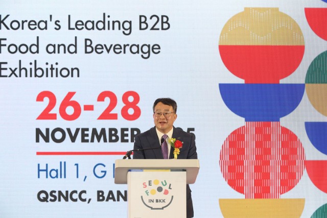 นายคู บนคยอง ผู้อำนวยการใหญ่ประจำภูมิภาคเอเชียตะวันออกเฉียงใต้และโอเชียเนีย สำนักงานส่งเสริมการค้าและการลงทุนเกาหลี (Korea Trade-Investment Promotion Agency : KOTRA) เปิดเผยว่า งาน SEOUL FOOD in Bangkok 2025 ในปีนี้ถือเป็นการขยายงาน “Seoul Food” สู่ต่างประเทศอย่างเป็นรูปธรรม และจะเป็นเวทีสำคัญในการขยายตลาด K-Food สู่ภูมิภาคอาเซียนอย่างกว้างขวางยิ่งขึ้น งาน Seoul Food นับเป็นหนึ่งในงานแสดงสินค้าอาหารที่ใหญ่ที่สุดในเอเชีย โดยงานที่จัดขึ้นเมื่อเดือนมิถุนายนที่ผ่านมา ณ KINTEX (ประเทศเกาหลีใต้) มีบริษัทร่วมแสดงสินค้ากว่า 1,639 แห่ง จาก 45 ประเทศ ทำสถิติสูงสุดเป็นประวัติการณ์ ทั้งนี้ KOTRA ได้เร่งผลักดันการขยายงานแสดงสินค้าสู่ระดับสากลอย่างจริงจัง ซึ่งประเทศไทยได้รับเลือกให้เป็นเจ้าภาพงาน Seoul Food ในต่างประเทศต่อเนื่องเป็นปีที่ 2 เนื่องจากเล็งเห็นว่าประเทศไทยมีศักยภาพทางการตลาดที่โดดเด่น และมีความนิยมวัฒนธรรมเกาหลีที่แข็งแกร่ง นอกจากนั้นไทยยังเป็นศูนย์กลางด้านโลจิสติกส์ และ การจัดจำหน่ายของอาเซียน (Hub) รวมถึงเป็นประตู (Gateway) ในการทดสอบตลาดสินค้า K-Food สู่ประเทศอื่นๆ ในภูมิภาคนี้