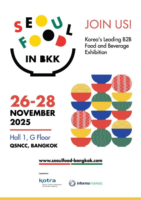 กระแสความนิยม K-Food ยังคงเติบโตอย่างต่อเนื่องทั่วโลก โดยประเทศไทยถือเป็นศูนย์กลางของวัฒนธรรมเกาหลีในอาเซียน ดังนั้นจึงได้รับเกียรติให้เป็นเจ้าภาพจัดงานแสดงสินค้าอาหารเกาหลี “SEOUL FOOD in Bangkok 2025” โดยมีกำหนดจัดขึ้นเป็นเวลา 3 วัน ตั้งแต่วันที่ 26 – 28 พฤศจิกายน 2025 ณ ศูนย์การประชุมแห่งชาติสิริกิติ์ (QSNCC)