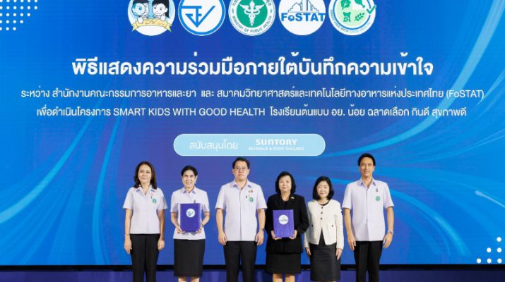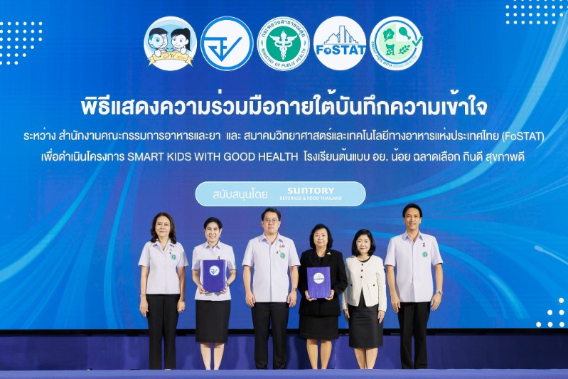 เภสัชกรหญิงสุภัทรา บุญเสริม เลขาธิการคณะกรรมการอาหารและยา กล่าวเพิ่มเติมว่า สำนักงานคณะกรรมการอาหารและยา (อย.) ให้ความสำคัญกับการขับเคลื่อนเครือข่ายโรงเรียน อย.น้อย อย่างต่อเนื่อง เพื่อเสริมสร้างความรอบรู้ด้านผลิตภัณฑ์สุขภาพแก่เยาวชนไทย ผ่านการบูรณาการความร่วมมือระหว่างภาครัฐ ภาคเอกชน และภาควิชาการ สำหรับกิจกรรมในครั้งนี้ เป็นความร่วมมือภายใต้บันทึกความเข้าใจ (MOU) ระหว่างสำนักงานคณะกรรมการอาหารและยา (อย.) และสมาคมวิทยาศาสตร์และเทคโนโลยีทางอาหารแห่งประเทศไทย (FoSTAT) โดยได้รับการสนับสนุนจากบริษัท ซันโทรี่ เบเวอเรจ แอนด์ ฟู้ด (ประเทศไทย) จำกัด ดำเนินกิจกรรม “Smart Kids with Good Health” นับเป็นอีกก้าวสำคัญในการเสริมสร้างความเข้มแข็งให้กับกิจกรรม อย.น้อย ในโรงเรียน เพื่อขับเคลื่อนนำไปสู่การพัฒนาเป็นนักสื่อสารผลิตภัณฑ์สุขภาพรุ่นใหม่