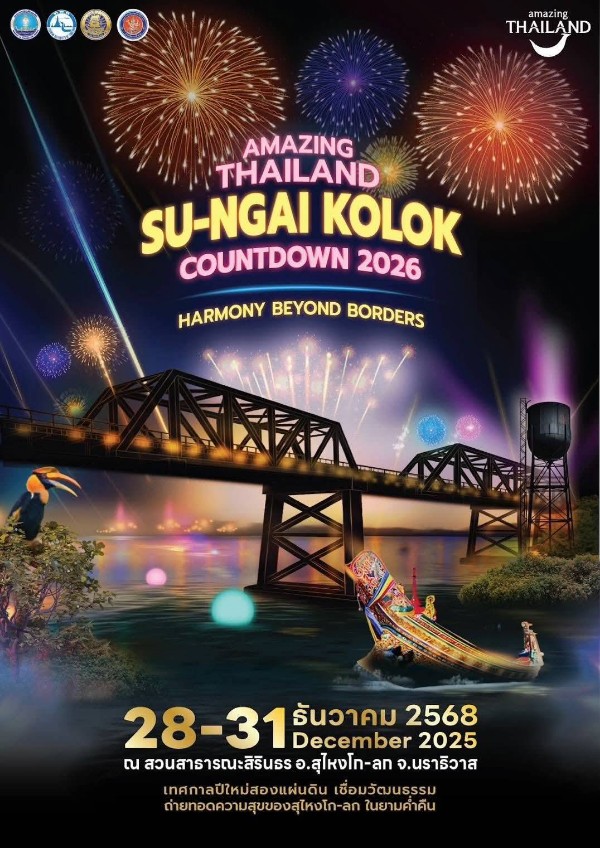 นางสาวฐาปนีย์ เกียรติไพบูลย์ ผู้ว่าการ ททท. กล่าวว่า ททท. เตรียมส่งมอบความสุขส่งท้ายปี พร้อมสร้างบรรยากาศแห่งการเฉลิมฉลองต้อนรับศักราชใหม่ด้วยการจัดงานเคานต์ดาวน์ใน 2 เมืองน่าเที่ยวที่เปี่ยมด้วยเสน่ห์และอัตลักษณ์โดดเด่น ได้แก่ PHAYAO COUNTDOWN FLORA FEST 2026 แสงแห่งรักพะเยา เทิดพระเกียรติแม่แห่งแผ่นดิน จัดขึ้นวันที่ 28 -31 ธันวาคม 2568 ณ ลานกิจกรรมพ่อขุนงำเมือง กว๊านพะเยา จังหวัดพะเยา เนรมิตพื้นที่อย่างตระการตาด้วยกิจกรรมไฮไลต์การประดับไฟในโซน Lighting & Installation Zone ผสานความงดงามของดอกไม้ในโซน Flora Art & Exhibition Zone เติมเต็มสีสันด้วยแสง สี เสียง การแสดงพลุและโดรนสุดอลังการ พร้อมทัพศิลปินชื่อดัง และกิจกรรมปล่อยโคมร่วมถวายความอาลัย ก่อนนับถอยหลังสู่ปีใหม่ 2569 อย่างน่าประทับใจ และงาน Amazing Thailand Su-ngaikolok Countdown 2026 จัดขึ้นวันที่ 28-31 ธันวาคม 2568 ณ สวนสาธารณะสิรินธร อำเภอสุไหงโก-ลก จังหวัดนราธิวาส ถ่ายทอดความงดงามของแสงไฟด้วยเทคนิค Light Up และ Mapping ควบคู่กับการประดับไฟตามจุดสำคัญทั่วพื้นที่ ภายใต้แนวคิด “Harmony Beyond Borders” เสริมบรรยากาศการเฉลิมฉลองด้วยการแสดงจากศิลปินชั้นนำ และการแสดงวัฒนธรรมอัตลักษณ์ท้องถิ่น อาทิ ลิเกฮูลู ระบำตารีกีปัส และปันจักสีลัต การจัดงานทั้งสองแห่งนี้ นับเป็นโอกาสสำคัญในการสะท้อนศักยภาพของเมืองน่าเที่ยวที่มีแนวโน้มพัฒนาไปสู่การเป็นจุดหมายปลายทางท่องเที่ยวแห่งใหม่ของประเทศ ตลอดจนช่วยกระจายการเดินทางท่องเที่ยวจากเมืองหลักสู่เมืองรองและพื้นที่ใกล้เคียง สร้างงาน สร้างรายได้ให้เกิดการกระจายสู่เศรษฐกิจฐานรากอย่างทั่วถึงเป็นกลไกสำคัญในการผลักดันการพัฒนาโครงสร้างพื้นฐานให้พร้อมรองรับนักท่องเที่ยวในอนาคตอย่างยั่งยืน