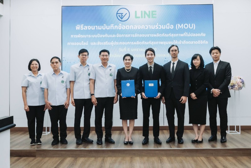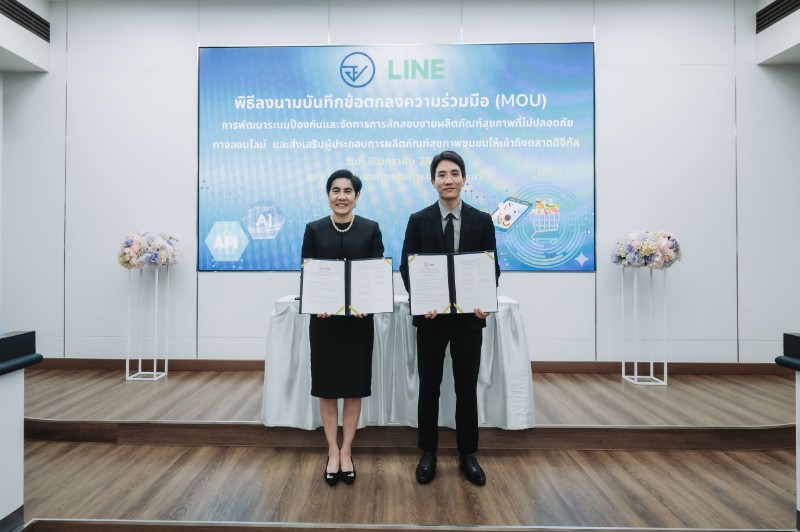 สำนักงานคณะกรรมการอาหารและยา (อย.) ลงนามบันทึกข้อตกลงความร่วมมือ (MOU) กับ บริษัทไลน์ คอมพานี (ประเทศไทย) จำกัด เพื่อยกระดับการป้องกันและจัดการการลักลอบจำหน่ายผลิตภัณฑ์สุขภาพที่ไม่ปลอดภัยบนแพลตฟอร์มออนไลน์ ควบคู่กับการส่งเสริมผู้ประกอบการผลิตภัณฑ์สุขภาพชุมชนให้เข้าถึงตลาดดิจิทัลได้ง่ายขึ้น โดยมี เภสัชกรหญิงสุภัทรา บุญเสริม เลขาธิการคณะกรรมการอาหารและยา และนายรัฐธีร์ ฉัตรดำรงค์ศักดิ์ รองประธานเจ้าหน้าที่ฝ่ายการพาณิชย์ บริษัทไลน์ คอมพานี (ประเทศไทย) จำกัด ร่วมลงนาม