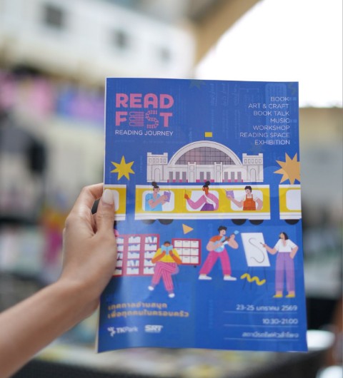 เทศกาล READ FEST: READING JOURNEY จัดขึ้นระหว่างวันที่ 23–25 มกราคม 2569 เวลา 10.30–21.00 น. ณ สถานีรถไฟกรุงเทพ (หัวลำโพง) ติดตามรายละเอียดกิจกรรมเพิ่มเติมได้ที่ Facebook: TK Park อุทยานการเรียนรู้ และ Facebook: Book Festival