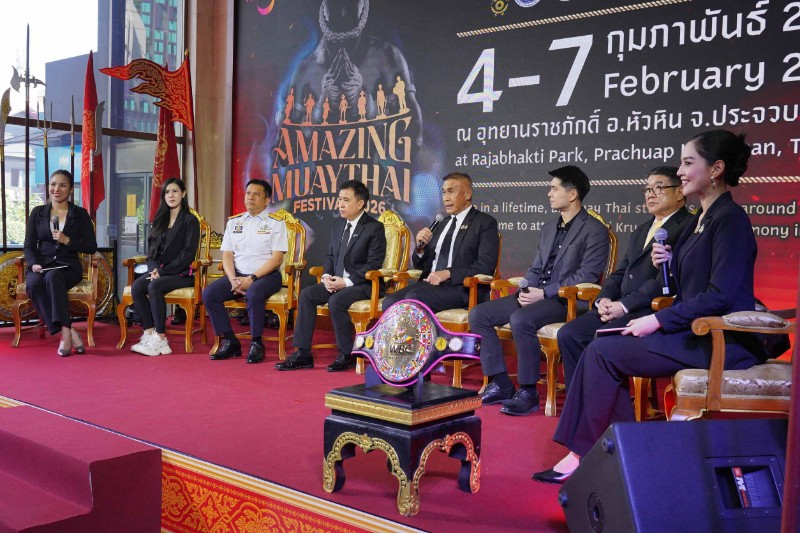 วันนี้ (2 กุมภาพันธ์ 2569) การท่องเที่ยวแห่งประเทศไทย (ททท.) ร่วมกับ จังหวัดประจวบคีรีขันธ์ กองทัพบก การกีฬาแห่งประเทศไทย กระทรวงวัฒนธรรม กรมประชาสัมพันธ์ มหาวิทยาลัยราชภัฏหมู่บ้านจอมบึง และสภามวยโลกมวยไทย (WBC) แถลงข่าวการจัดงาน“Amazing MuayThai Festival 2026”โดยมี นายณัฐ ครุฑสูตร รองผู้ว่าการด้านสินค้าและธุรกิจท่องเที่ยว ททท. เป็นประธานในการแถลงข่าว พร้อมด้วย ร้อยโทสิทธิชัย ตัณฑสิทธิ์ ท่องเที่ยวและกีฬาจังหวัดประจวบคีรีขันธ์ นายณัฐพล อันตรเสน ผู้อำนวยการสำนักงานคณะกรรมการกีฬามวย พลโท บรรยง ทองน่วม รองเสนาธิการทหารบก และ ผู้ช่วยศาสตราจารย์อรรถพล อุสายพันธ์ อธิการบดีมหาวิทยาลัยราชภัฏหมู่บ้านจอมบึง ให้เกียรติเข้าร่วมงาน ณ ห้องโถงธนะรัชต์ อาคาร ททท. โดยจัดขึ้นภายใต้แนวคิด “Ultimate Muay Thai Experience” ระหว่างวันที่ 4 – 7 กุมภาพันธ์ 2569 ณ อุทยานราชภักดิ์ อำเภอหัวหิน จังหวัดประจวบคีรีขันธ์ เพื่อเผยแพร่มรดกทางวัฒนธรรมมวยไทยในระดับนานาชาติ พร้อมยกระดับมวยไทยสู่มาตรฐานสากล ตลอดจนกระตุ้นให้เกิดการเดินทางท่องเที่ยวภายในประเทศของนักท่องเที่ยวชาวไทยและต่างชาติ
