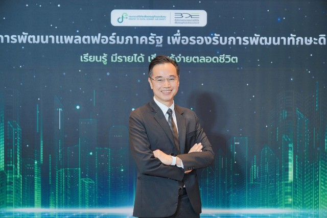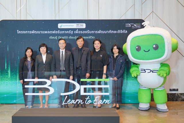 วันนี้ (25 กุมภาพันธ์ 2569) กระทรวงดิจิทัลเพื่อเศรษฐกิจและสังคม โดยสำนักงานคณะกรรมการดิจิทัลเพื่อเศรษฐกิจและสังคมแห่งชาติ (BDE : National Board of Digital Economy and Society) จัดงานแถลงข่าวเปิดตัวและพิธีลงนามบันทึกความเข้าใจ (MOU) “โครงการพัฒนาแพลตฟอร์มภาครัฐเพื่อรองรับการพัฒนาทักษะดิจิทัล เรียนรู้ มีรายได้ เรียนรู้ง่ายตลอดชีวิต หรือ BDE Learn to Earn” ณ ห้องประชุม Asawin Ballroom A โรงแรม Asawin Grand Convention กรุงเทพฯ โดยมีนายเวทางค์ พ่วงทรัพย์ เลขาธิการคณะกรรมการดิจิทัลเพื่อเศรษฐกิจและสังคมแห่งชาติ เป็นประธานในพิธีเปิด พร้อมด้วยนางสาวพลอยรวี เกริกพันธ์กุล ผู้อำนวยการกองขับเคลื่อนดิจิทัลเพื่อสังคม กล่าวรายงานวัตถุประสงค์และแนวทางดำเนินโครงการ โดยผู้เข้าร่วมงานมาจากทั้งหน่วยงานภาครัฐ ภาคเอกชน สถาบันการศึกษา และสื่อมวลชน