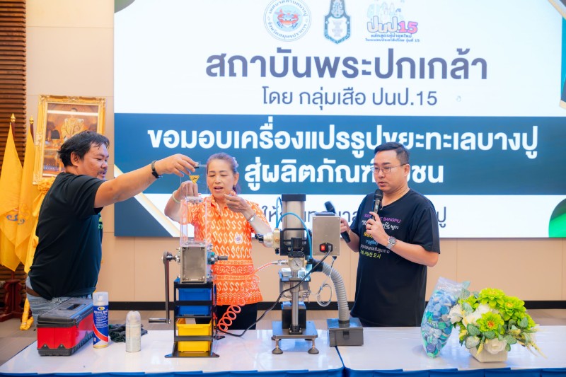 นายเอกลักษณ์ ศรีชมพันธ์ รองนายกเทศมนตรีตำบลบางปู กล่าวว่า “เทศบาลตำบลบางปูขอขอบคุณคณะนักศึกษาหลักสูตร ปนป. รุ่นที่ 15 ที่สนับสนุนเครื่องมือและอุปกรณ์ในครั้งนี้ เครื่องแปรรูปขยะชุดนี้จะช่วยให้เทศบาลสามารถบริหารจัดการขยะพลาสติกในพื้นที่ได้อย่างเป็นระบบและมีประสิทธิภาพมากยิ่งขึ้น และที่สำคัญ เรายังสามารถต่อยอดขยะที่ผ่านการแปรรูปให้กลายเป็นผลิตภัณฑ์ของชุมชน สร้างรายได้เสริมและกระตุ้นเศรษฐกิจฐานราก ควบคู่กับการปลูกจิตสำนึกเรื่องการคัดแยกและใช้ทรัพยากรอย่างคุ้มค่า ซึ่งเป็นแนวทางการพัฒนาท้องถิ่นที่เชื่อมโยงทั้งด้านเศรษฐกิจ สังคม และสิ่งแวดล้อมไปพร้อมกัน”