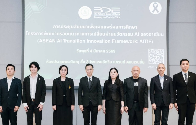 (4 มีนาคม 2569) นายเวทางค์ พ่วงทรัพย์ เลขาธิการคณะกรรมการดิจิทัลเพื่อเศรษฐกิจและสังคมแห่งชาติ (BDE) เป็นประธานการประชุมสัมมนาเพื่อเผยแพร่ผลการศึกษาโครงการพัฒนากรอบแนวทางการเปลี่ยนผ่านนวัตกรรม AI ของอาเซียน (ASEAN AI Transition Innovation Framework : AITIF) พร้อมด้วยนางสาวพรพรรณ ตันนุกิจ ผู้อำนวยการกองขับเคลื่อนดิจิทัลเพื่อเศรษฐกิจ BDE กล่าวรายงานวัตถุประสงค์ของการจัดงาน โดยมีผู้แทนจากหน่วยงานภาครัฐ ภาคเอกชน/รัฐวิสาหกิจ และสถาบันการศึกษา ณ ห้องประชุมพระวิษณุ ชั้น 3 โรงแรมอัศวิน แกรนด์ คอนเวนชั่น หลักสี่ กรุงเทพฯ