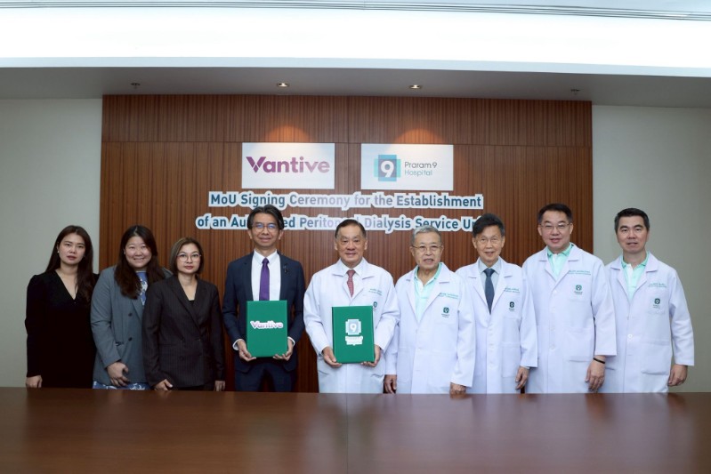 โรงพยาบาลพระรามเก้า ร่วมกับ บริษัท แวนทีฟ เฮลธ์แคร์ (ประเทศไทย) จำกัด (Vantive) ผู้นำนวัตกรรมด้านการดูแลรักษาผู้ป่วยโรคไตระดับโลก ลงนามบันทึกข้อตกลงความร่วมมือเพื่อพัฒนาและเปิดให้บริการ “หน่วยบริการล้างไตทางช่องท้องด้วยเครื่องอัตโนมัติ (Automated Peritoneal Dialysis: APD)” ซึ่งถือเป็นอีกหนึ่งก้าวสำคัญในการยกระดับมาตรฐานการดูแลรักษาผู้ป่วยโรคไตในประเทศไทย พร้อมนำเทคโนโลยีทางการแพทย์สมัยใหม่เข้ามาเพิ่มทางเลือกในการรักษา และส่งเสริมคุณภาพชีวิตที่ดีขึ้นให้แก่ผู้ป่วย