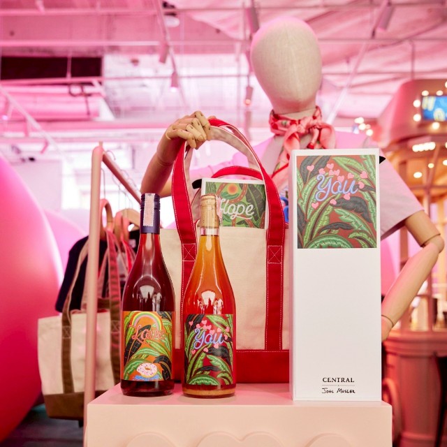 นอกจากนี้ ยังมีไวน์คอลเลกชันพิเศษจาก Cheese n’ Wine ร้านไวน์และชีสชื่อดังที่คัดสรรไวน์ออร์แกนิกคุณภาพจากแหล่งผลิตทั่วโลก โดยเลือกสรรไวน์ที่สะท้อนอารมณ์ของนิทรรศการในครั้งนี้ พร้อมออกแบบเคสและแท็กสำหรับขวดไวน์ในลวดลายเฉพาะที่ได้รับแรงบันดาลใจจากผลงานของ Joel Mesler ถ่ายทอดเอกลักษณ์ของศิลปินผ่านงานดีไซน์ที่ผสานศิลปะเข้ากับไลฟ์สไตล์ได้อย่างมีรสนิยม