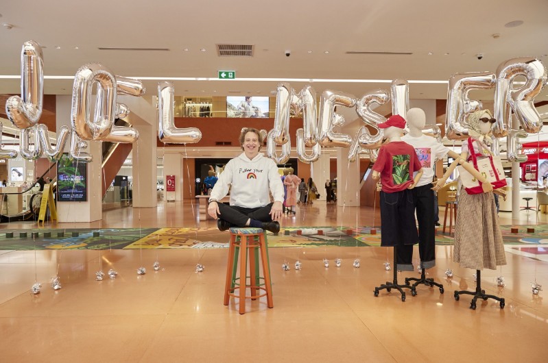 พื้นที่จำหน่ายสินค้าคอลเลกชันลิมิเต็ดที่นำลวดลายและข้อความจากผลงานของ Joel Mesler มาตีความเป็นไลฟ์สไตล์ไอเทมสำหรับนักสะสม อาทิ เสื้อผ้า กระเป๋า และถุงเท้า ถ่ายทอดความสดใส ความขี้เล่น และพลังบวกในแบบฉบับของศิลปิน พร้อมเปิดโอกาสให้ผู้รักงานศิลปะได้ร่วมสร้างสรรค์ไอเทมในสไตล์ของตนเอง ผ่านการเลือกพิมพ์ข้อความหรือถ้อยคำในสไตล์ Joel Mesler ลงบนสินค้าแต่ละชิ้นอย่างเป็นเอกลักษณ์ โดยได้รับการสนับสนุนเทคโนโลยีการพิมพ์จาก Epson Digital Textile Printing Solution ด้วยนวัตกรรม DTFilm (Direct-to-Film) ที่ช่วยให้การสร้างสรรค์ลวดลายบนสิ่งทอมีความคมชัด ยืดหยุ่น และมีประสิทธิภาพยิ่งขึ้น พร้อมใช้หมึกที่ได้มาตรฐานด้านความปลอดภัยและเป็นมิตรต่อสิ่งแวดล้อม ตอบโจทย์การผลิตงานออกแบบร่วมสมัยอย่างยั่งยืน อีกทั้งยังสามารถรับของที่ระลึกสุดเอ็กซ์คลูซีฟ อาทิ สติกเกอร์ลายผลงานศิลปิน และยาดมดีไซน์พิเศษ ที่สะท้อนการผสมผสานระหว่างวัฒนธรรมตะวันออกและตะวันตก ผ่านการตีความเอกลักษณ์ของไลฟ์สไตล์แบบไทยในมุมมองร่วมสมัย