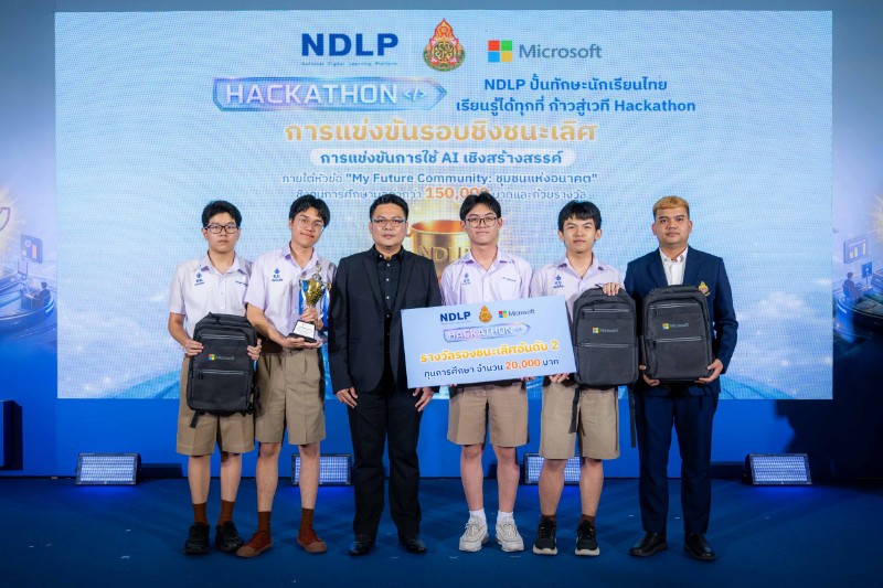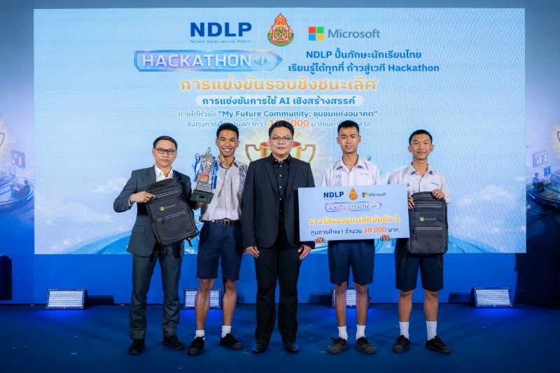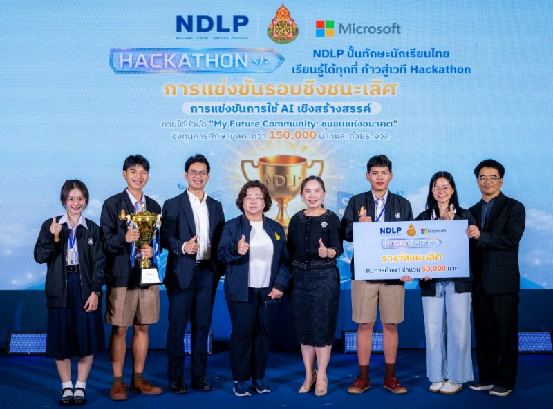 กรุงเทพฯ – 21 เมษายน 2569 – สำนักงานคณะกรรมการการศึกษาขั้นพื้นฐาน (สพฐ.) ผนึกกำลัง บ. ไมโครซอฟท์ (ประเทศไทย) เดินหน้าเชิงรุก ยกระดับระบบการศึกษาไทยเข้าสู่ยุคใหม่ สร้างโอกาสการเรียนรู้ทักษะดิจิทัลและ AI ให้แก่เยาวชน ผ่านแพลตฟอร์มการศึกษาระดับชาติ หรือ National Digital Learning Platform (NDLP) คิกออฟโปรเจ็คท์แรกอย่างเป็นรูปธรรม จัดการแข่งขัน AI Hackathon ภายใต้หัวข้อ “My Future Community – ชุมชนแห่งอนาคต” ชิงทุนการศึกษากว่า 150,000 บาท ซึ่งถือเป็นก้าวแรกของความร่วมมือ โดยมุ่งเปิดโอกาสให้นักเรียนระดับมัธยมศึกษาตอนปลายจาก 1,018 โรงเรียนนำร่อง ทั่วประเทศที่ใช้แพลตฟอร์ม NDLP ได้นำทักษะ AI ระดับโลกมาคิดค้นแนวทางแก้ไขปัญหาจริงในชุมชนของตนเอง และคัดเลือกจนเหลือ 8 ทีมสุดท้ายเข้าสู่รอบชิงชนะเลิศ เพื่อพัฒนาทักษะการคิดวิเคราะห์ การแก้ปัญหาเชิงสร้างสรรค์ใน Hackathon Workshop เรียนรู้ในการสร้าง pitch deck ไอเดียการแก้ไขปัญหาและสร้าง Smart Community รวมถึงได้รับคำแนะนำจากผู้เชี่ยวชาญอย่างใกล้ชิดก่อนถึงวันแข่งขันรอบชิงชนะเลิศ โดย สพฐ.และไมโครซอฟท์ ตั้งเป้าผลักดันให้เกิดการเรียนรู้ดิจิทัลและ AI ทั่วประเทศ ด้วยแผนขยายการเข้าถึงไปยังโรงเรียนในสังกัด สพฐ. ให้ครอบคลุมทั้งหมดกว่า 29,000 โรงเรียนให้ได้ภายในปลายปี 2569 เพื่อให้เยาวชนไทยทุกคน ไม่ว่าจะอยู่ที่ใด มีโอกาสเท่าเทียมกันในการเรียนรู้และสร้างสรรค์ด้วย AI
