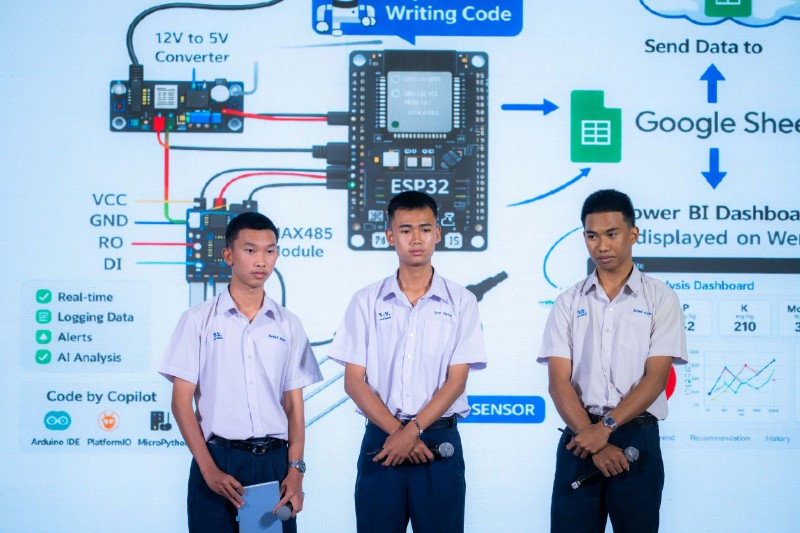 รางวัลรองชนะเลิศอันดับ 1 คือทีม “KKS re NPK” รร.ขุขันธ์ (ศรีสะเกษ) ผลงาน: Smart Fertilizer Management ช่วยตรวจสภาพดินและแนะนำสูตรปุ๋ยที่เหมาะสม ช่วยลดต้นทุน เพิ่มคุณภาพผลผลิต และส่งเสริมการเกษตรอย่างยั่งยืน ทุนการศึกษา จำนวน 30,000 บาท