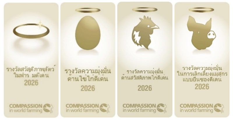 CIWF ขอเชิญชวนบริษัทไทยที่ดำเนินธุรกิจเกี่ยวกับไก่ไข่ ไก่เนื้อ และสุกร สมัครเข้าร่วมรางวัล รางวัลความมุ่งมั่นด้านไข่ไก่ดีเด่น (Good Egg), รางวัลความมุ่งมั่นด้านไก่ดีเด่น (Good Chicken) และ รางวัลยกย่องด้านการเลี้ยงแม่สุกร (Sow Stall Free) ประจำปี 2569 เพื่อเป็นส่วนหนึ่งของเครือข่ายบริษัทที่ร่วมกันยกระดับสวัสดิภาพสัตว์ในฟาร์ม